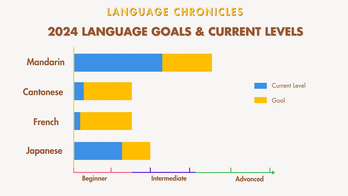 Languages I’m Learning in 2024: Mandarin, Cantonese, Japanese and French.