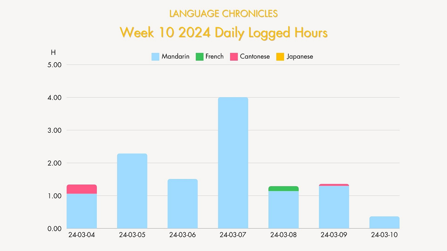 Languages Iβm Learning in 2024: Mandarin, Cantonese, Japanese and French. I donβt have any plans to take any exams in any of these languages. So, this year I want to keep my goals simple and attainable. π Note: Levels shown are my assumption based on how much I can understand with every language.